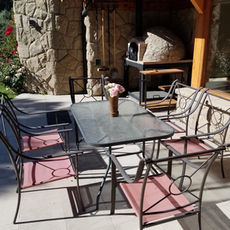Parrilla cubierta con mesa y sillas de exterior. Amplio Jardin parquizado e iluminado con vista al green del hoyo 16, con un bonito estanque hecho especialmente para las aves.