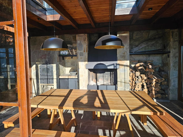 🌄 La propiedad cuenta con una galería exterior con vistas panorámicas al Lago Lácar y al Cerro Chapelco, ideal para disfrutar de atardeceres únicos y la tranquilidad patagónica.